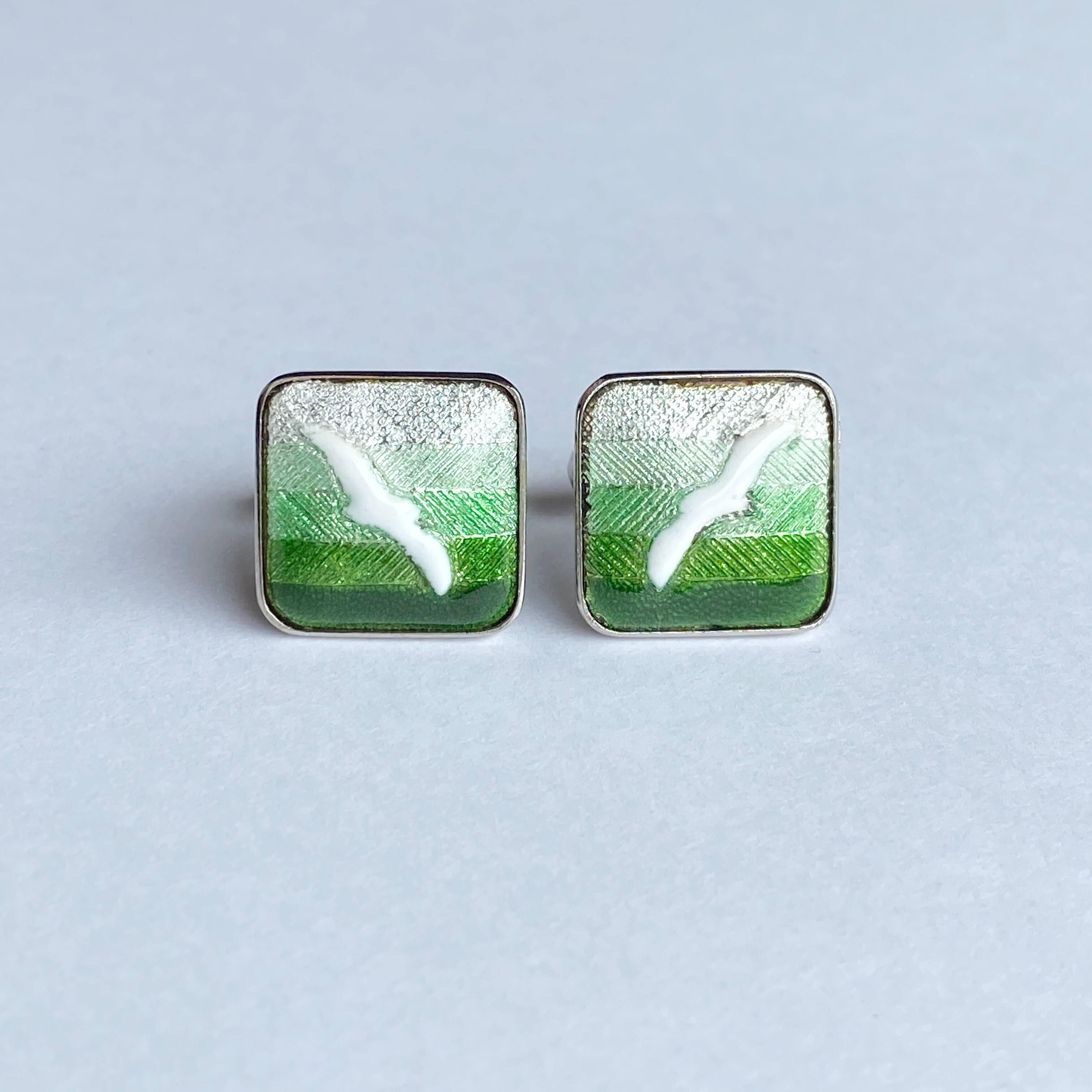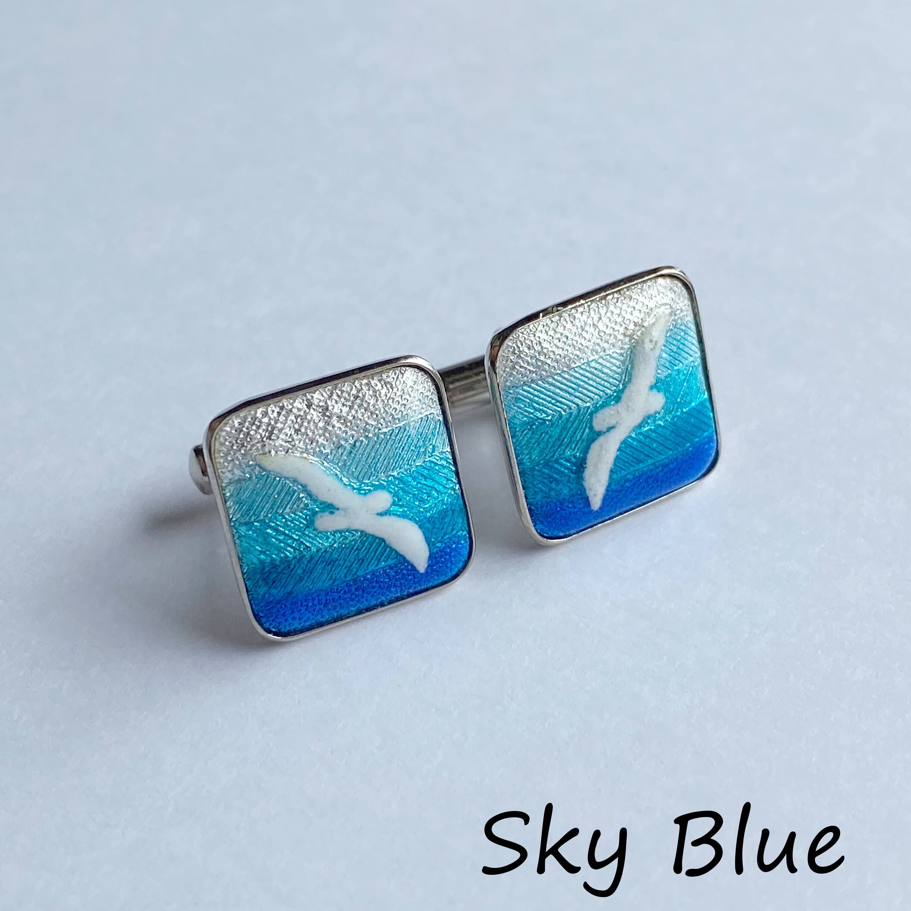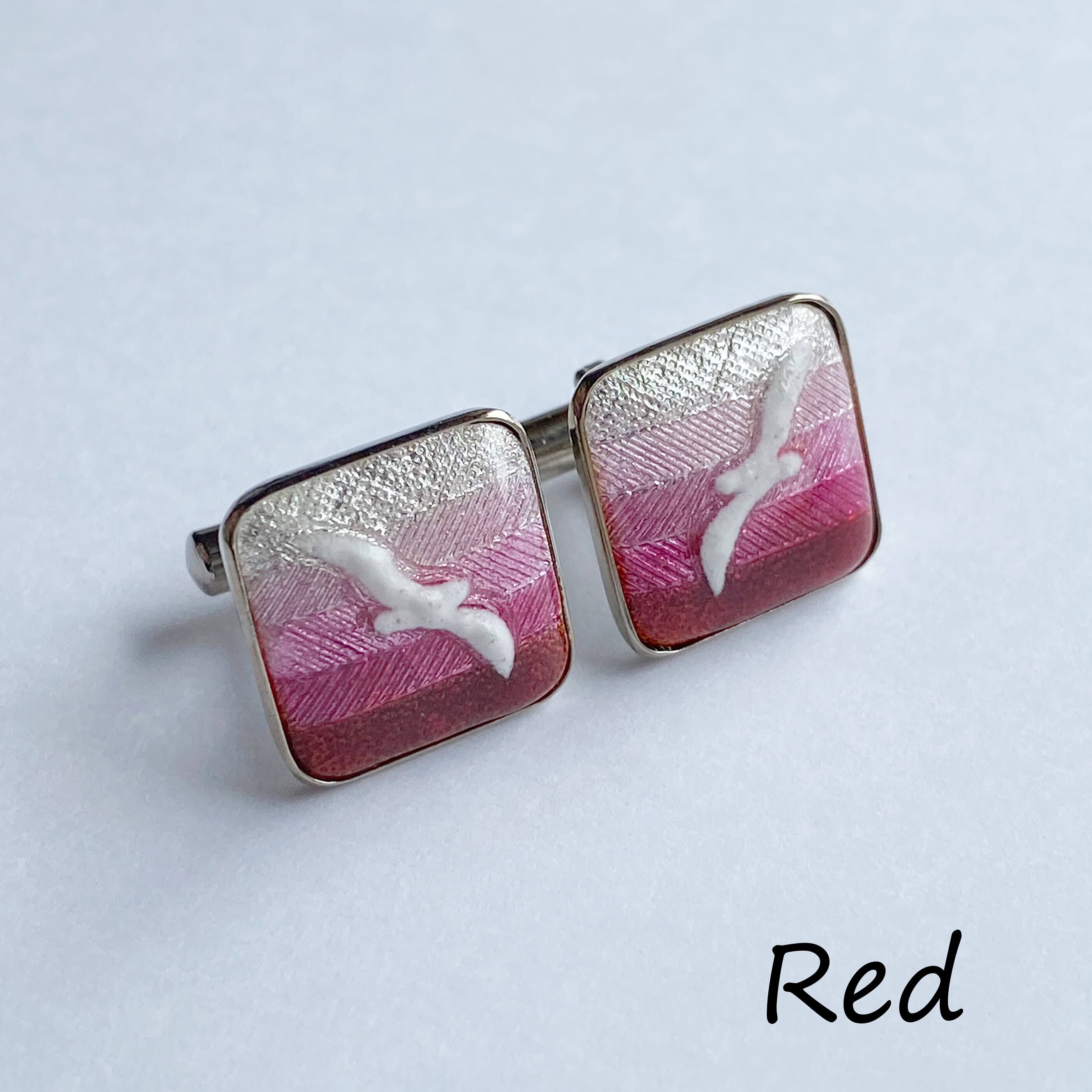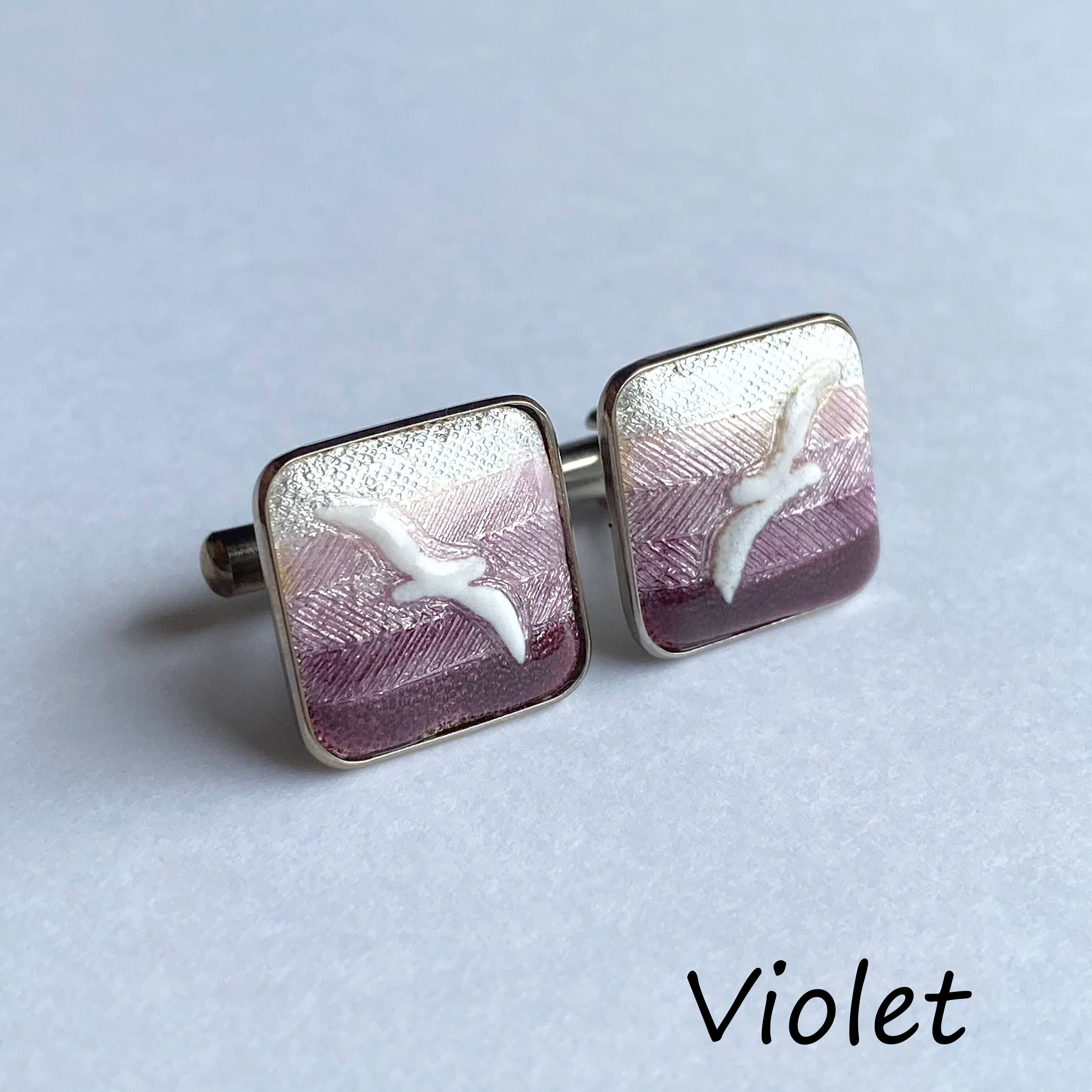 かもめ 七宝焼カフスボタン(カフリンクス) 純銀箔押し七宝