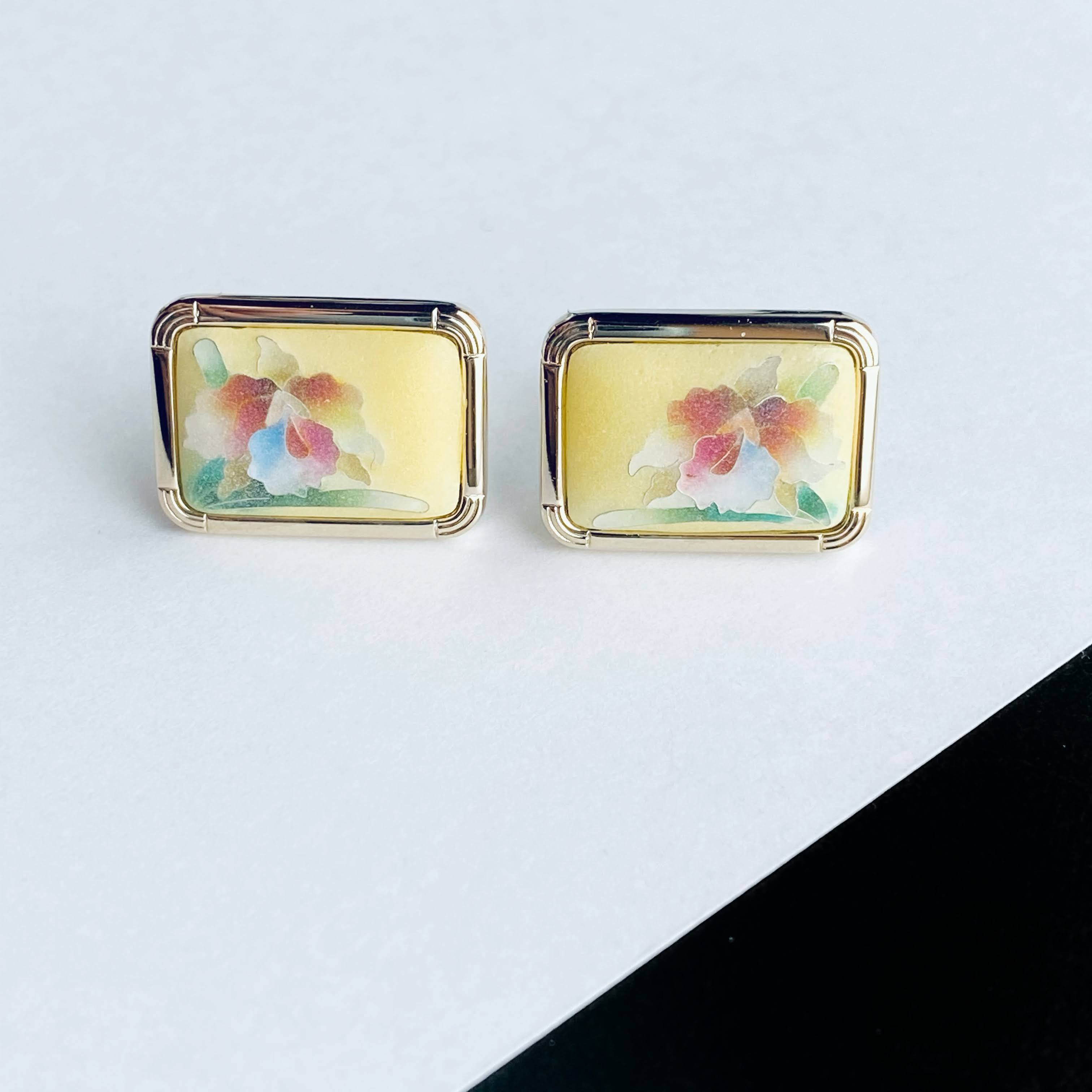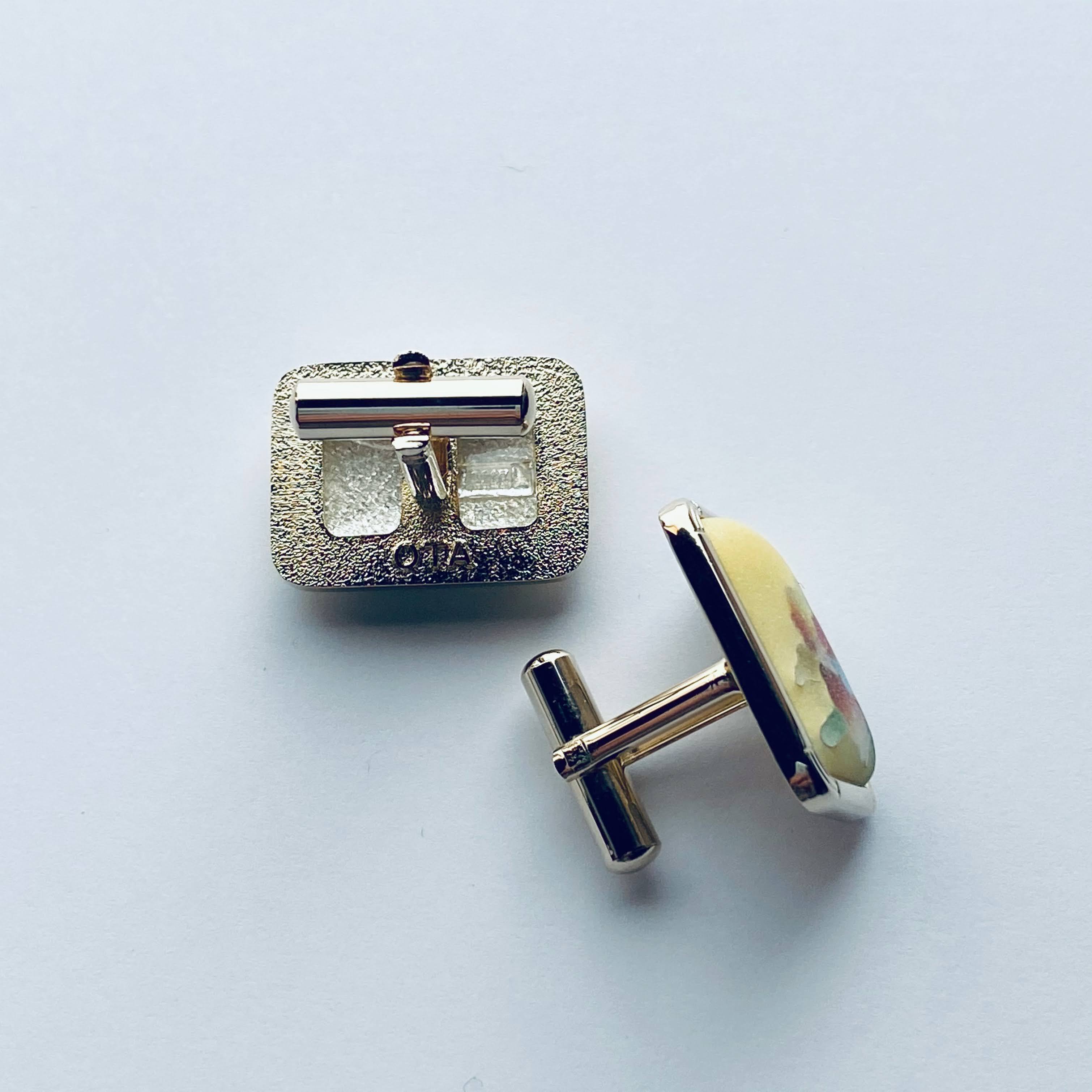つや消しカトレア 七宝焼のカフスボタン(カフリンクス) 純銀胎つや消し有線七宝 18kgf