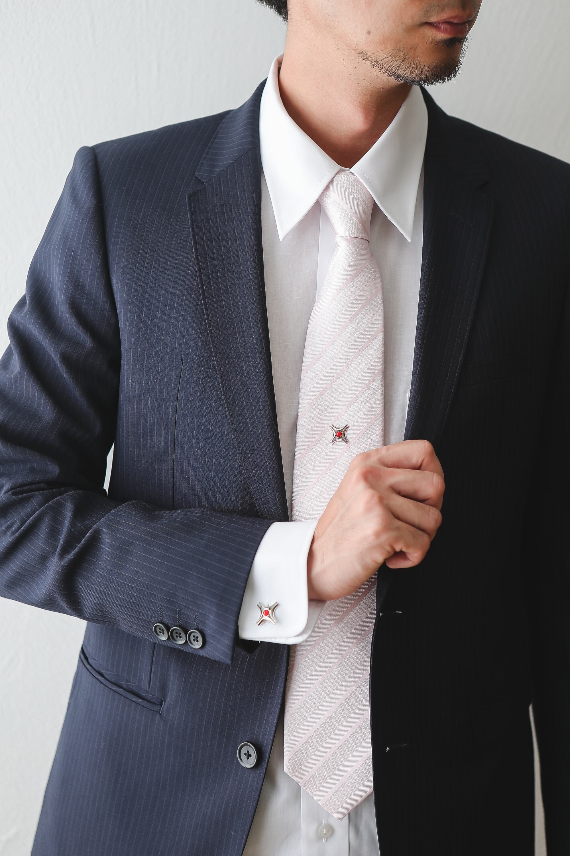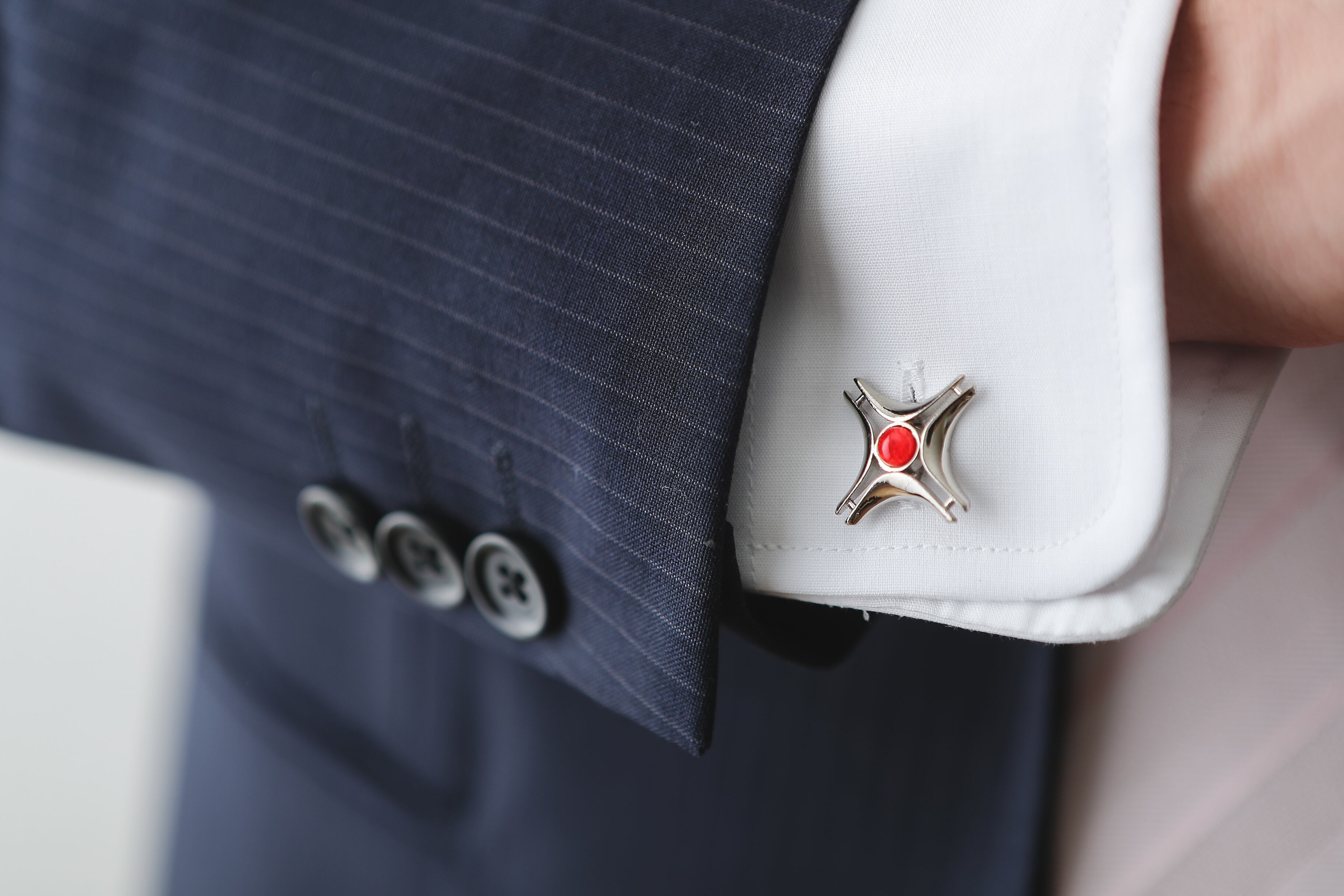 南極付近の夜空に輝く南十字星をイメージしたデザインのカフスボタン(カフリンクス)です。南国でしか見られないことからハワイアンジュエリーなどでも人気のモチーフで、手にする人に希望や夢を与えてくれると言われています。七宝部分には純銀素地を使用し、フォーマルな場でもお使いいただける高級感を演出しました。