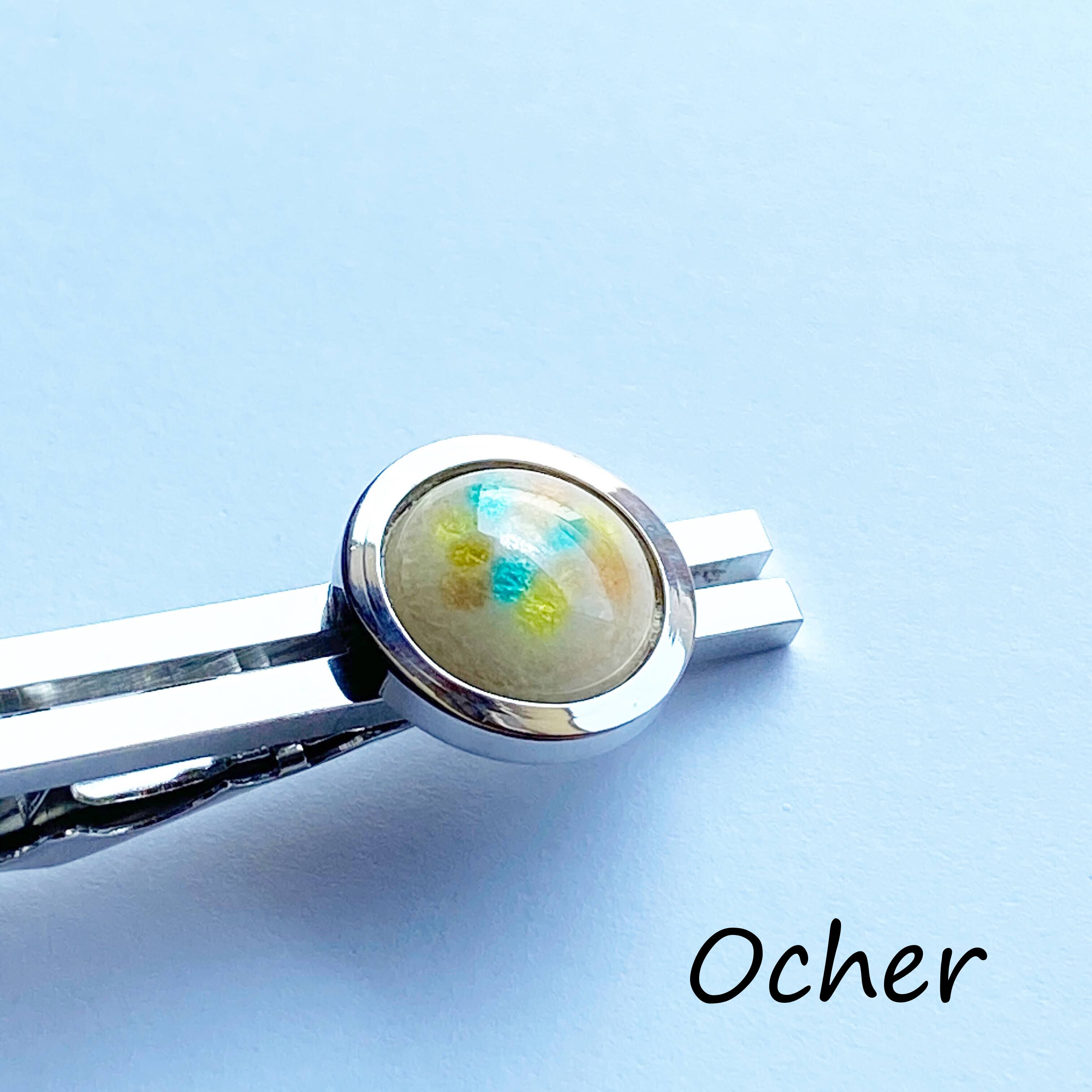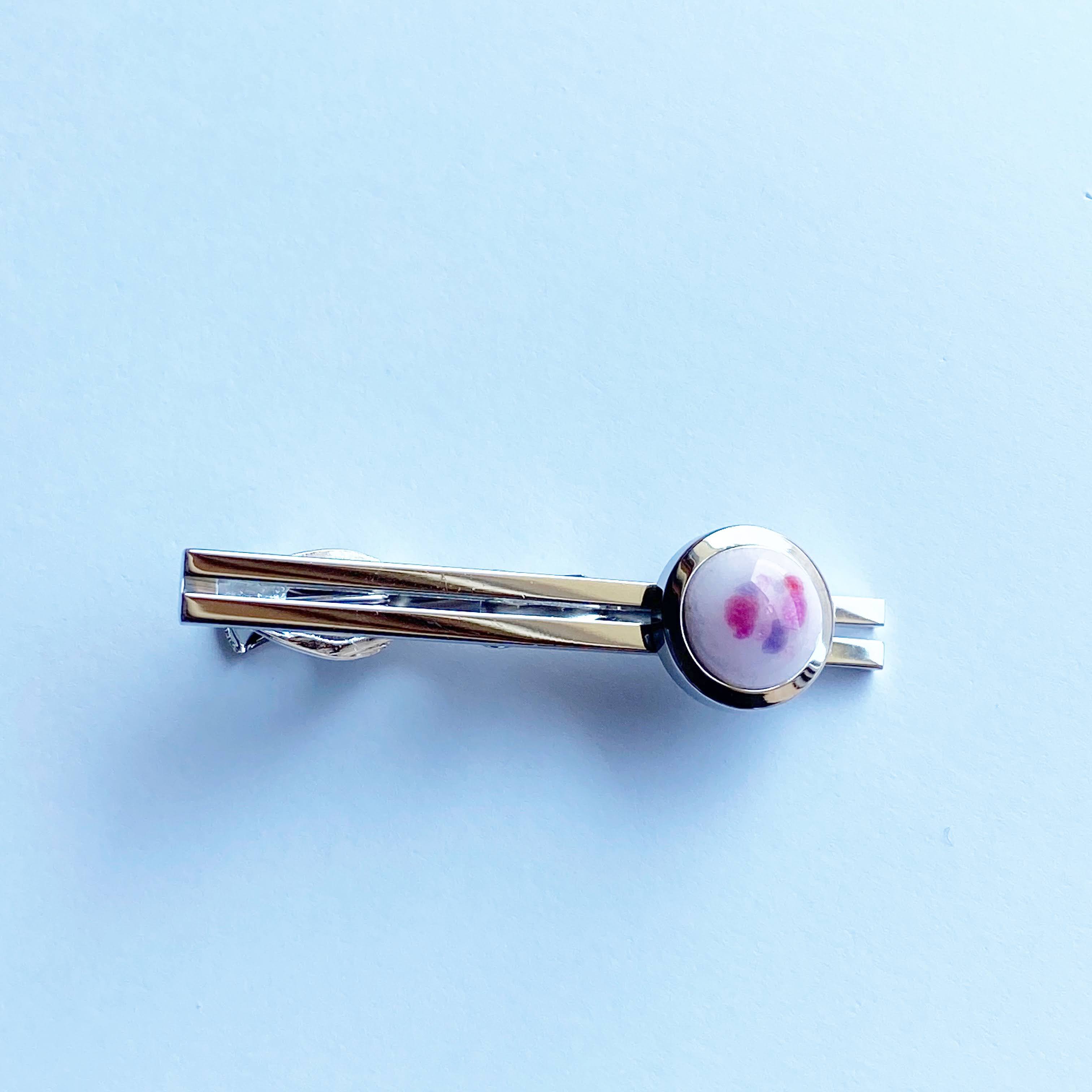 若い世代の方にも使っていただけるパステルカラーのネクタイピンです。カジュアルなデザインですが、七宝部分に純銀素地を使用することで、七宝焼らしい高級感を演出しました。