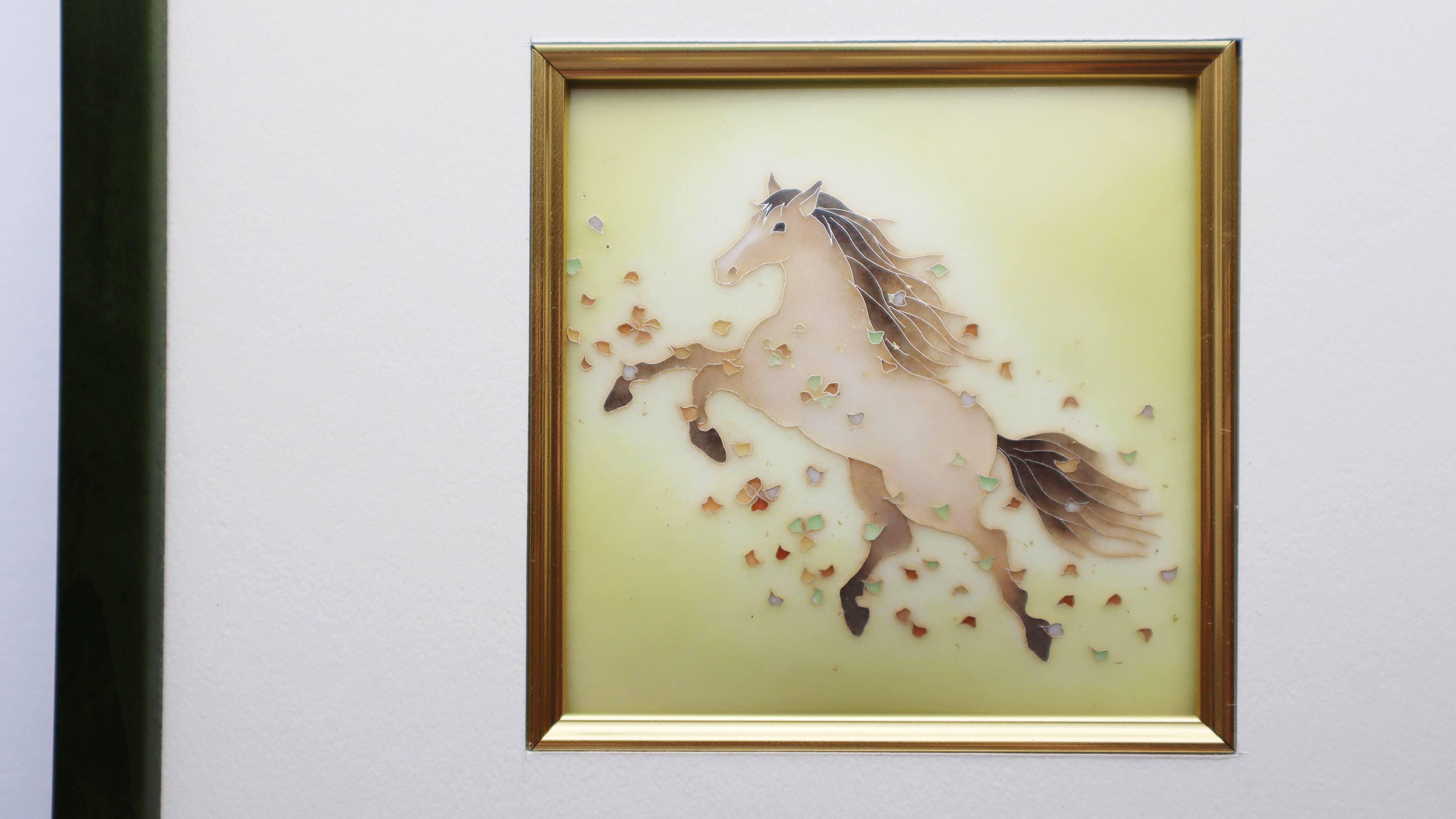 七宝焼「干支 午」七宝焼額 有線七宝 22×22cm