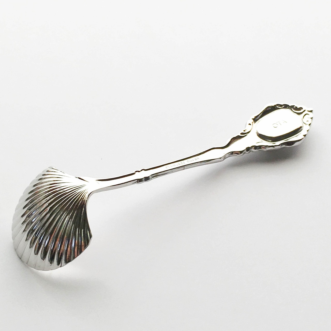 アンティークのようなシェル型のシュガースプーンのトップに美しいグラデーションの有線七宝を施しました。シュガースプーンとしてはもちろん、インテリアにもお使いいただけます。引き出物や結婚祝いとしても人気です。
