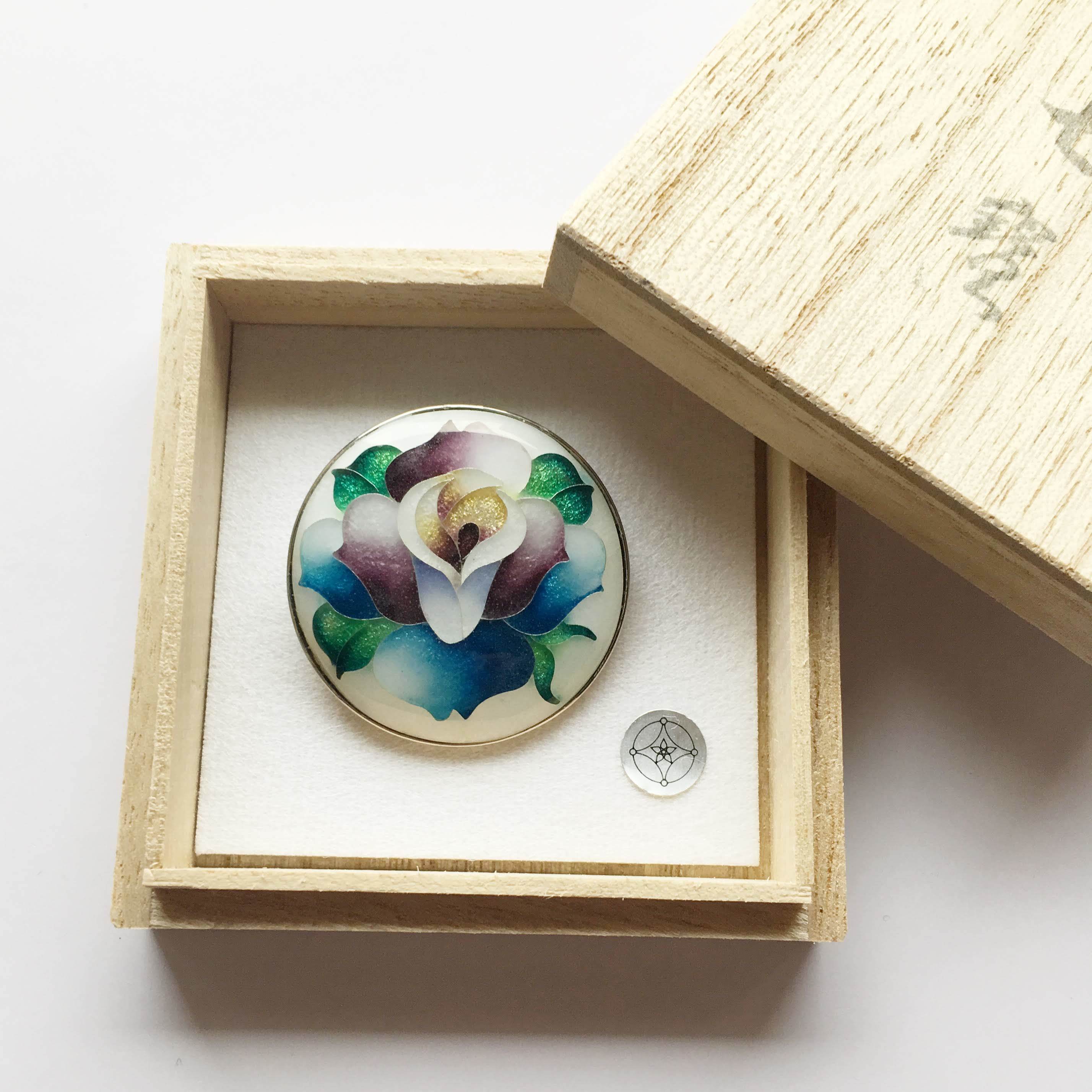 薔薇 七宝焼のブローチ 純銀張有線七宝