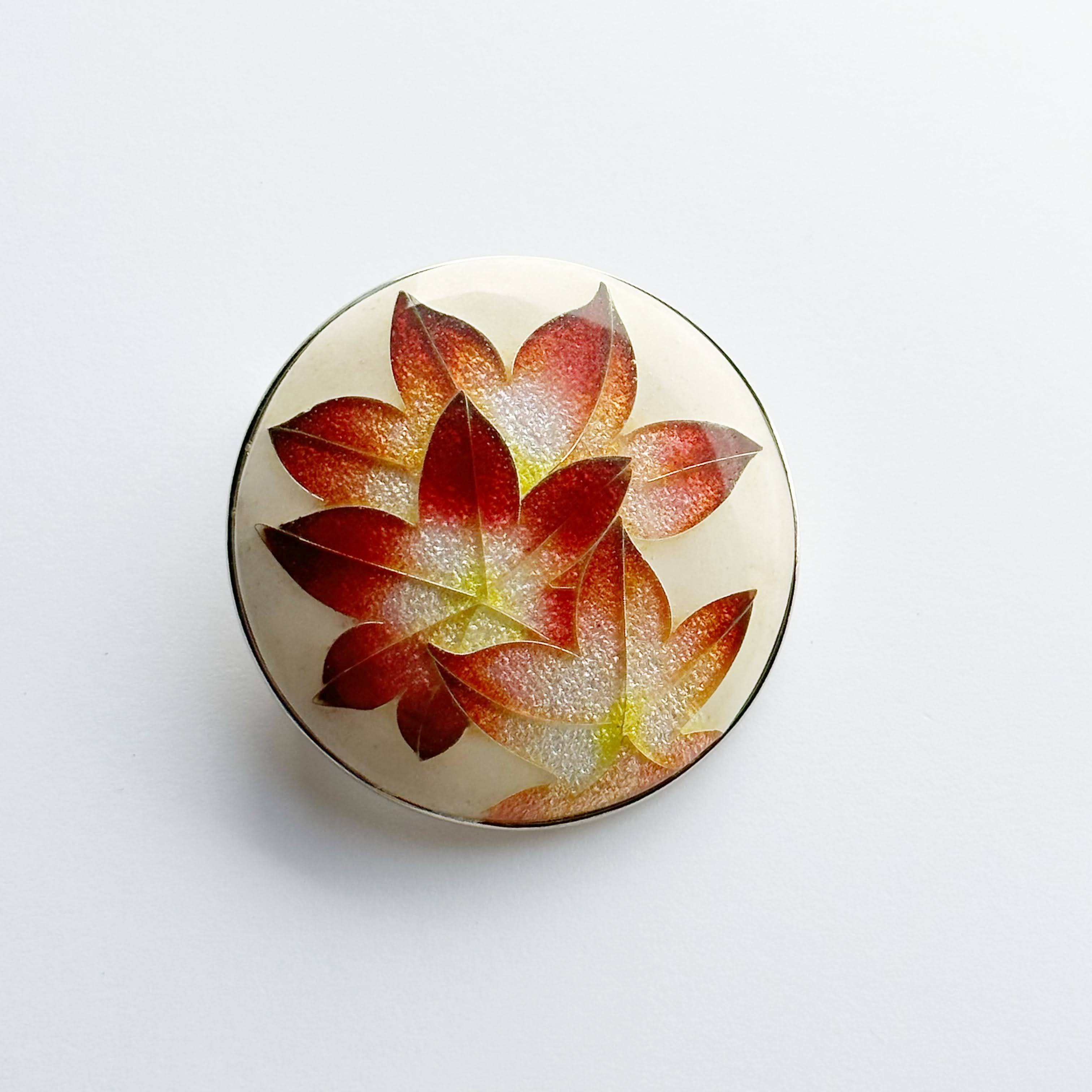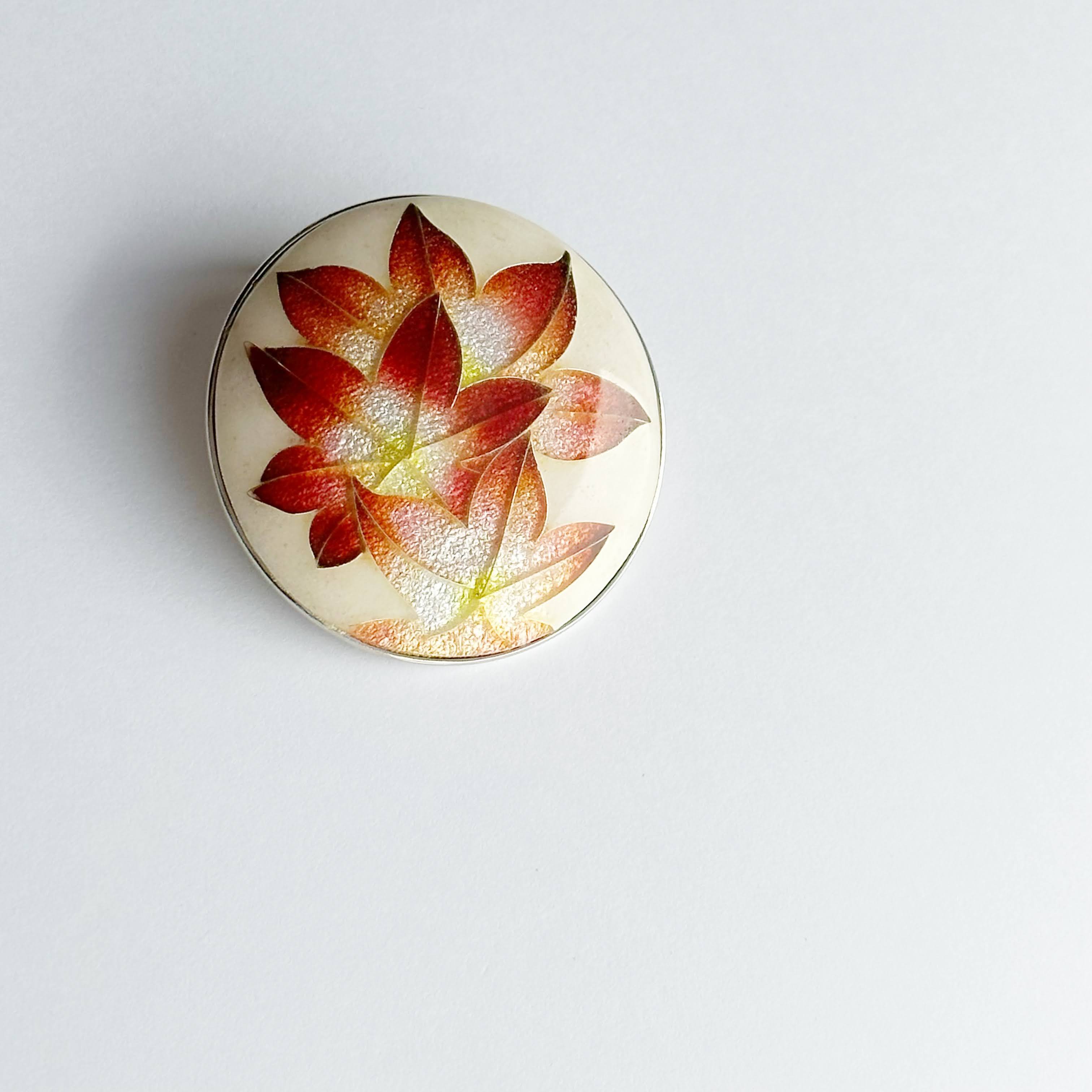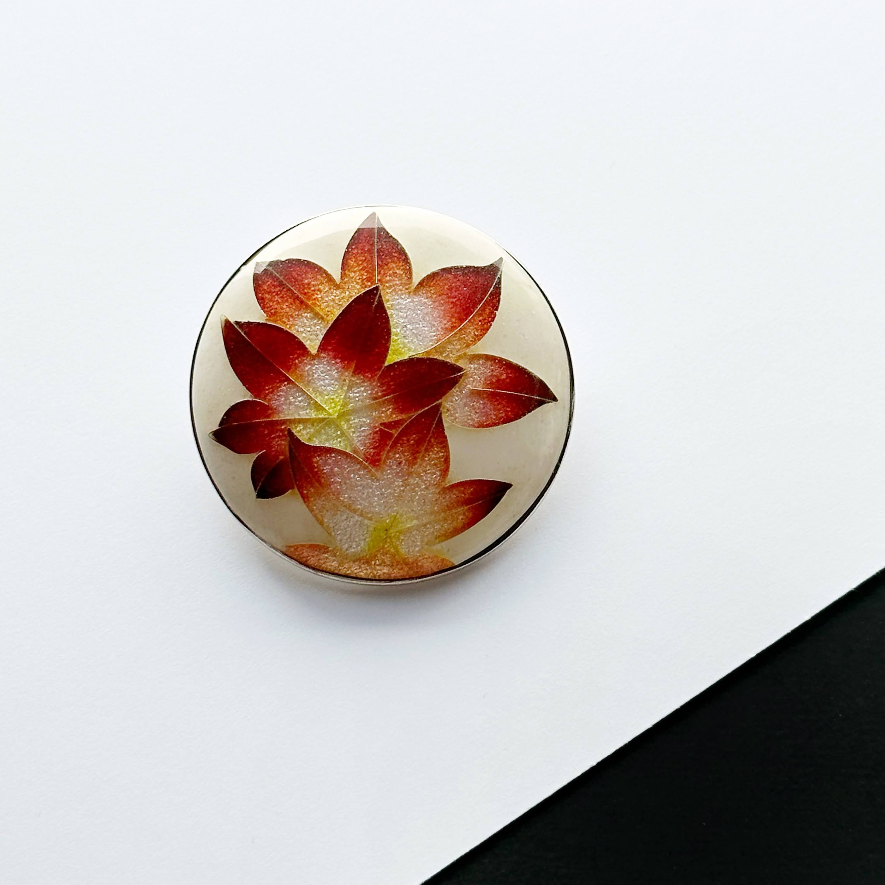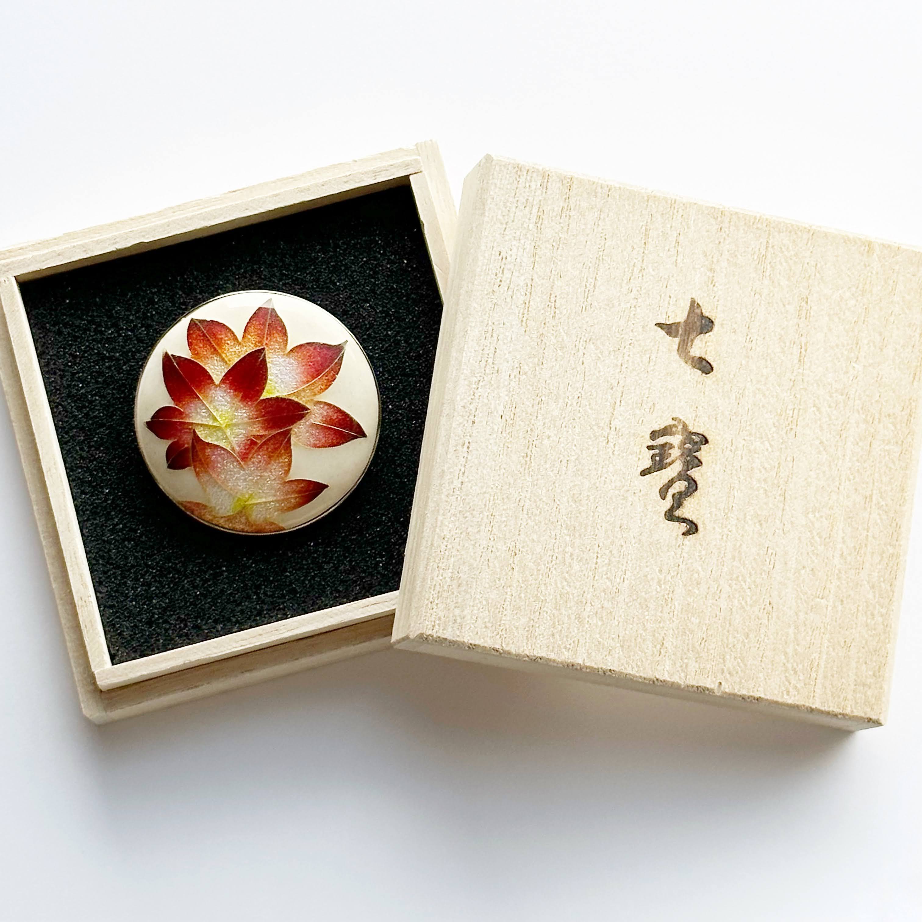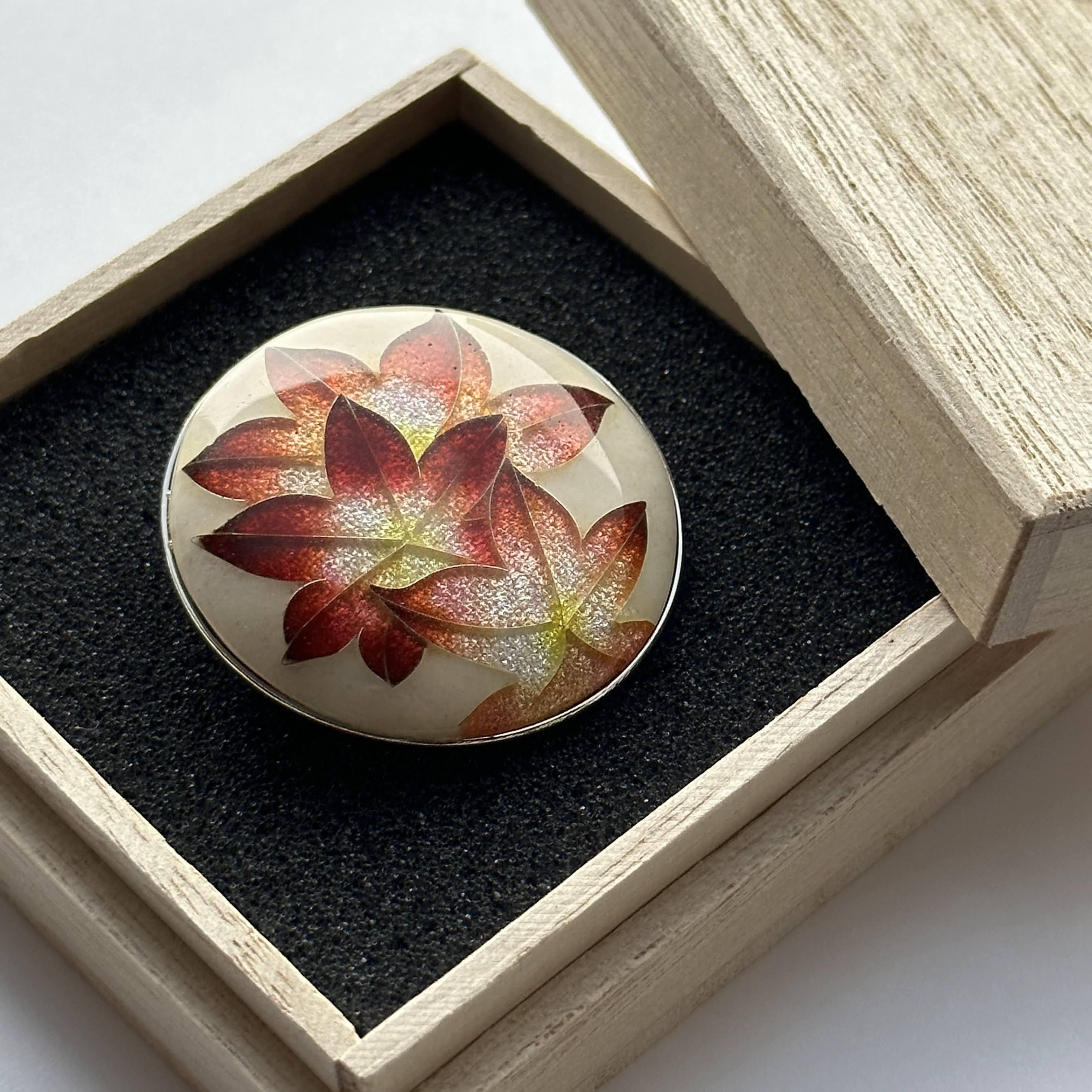 紅葉 七宝焼ブローチ 純銀張有線七宝