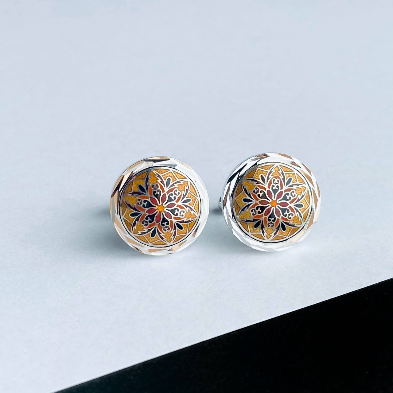 十二稜鏡 七宝焼のカフスボタン(カフリンクス) 純銀メタル七宝