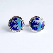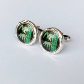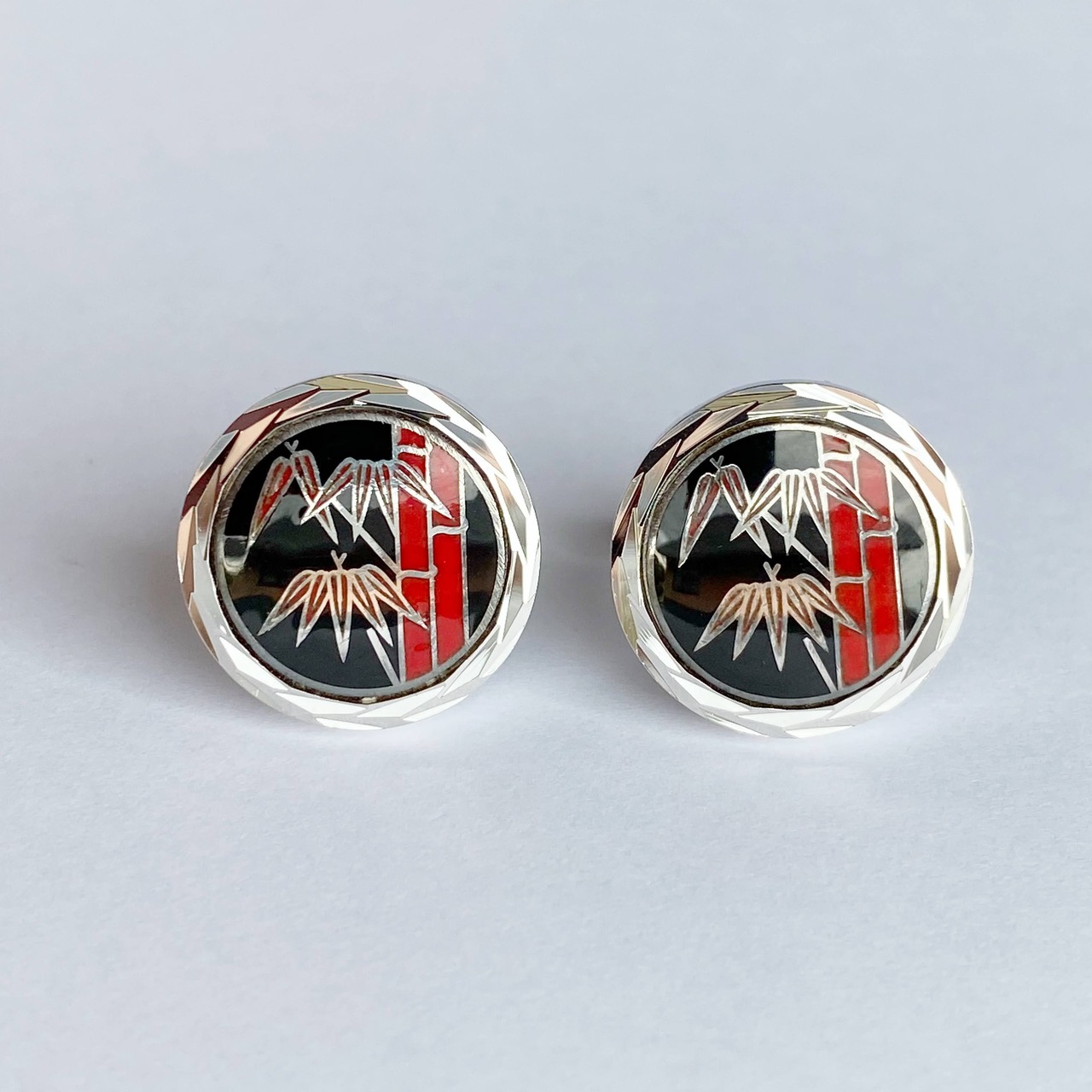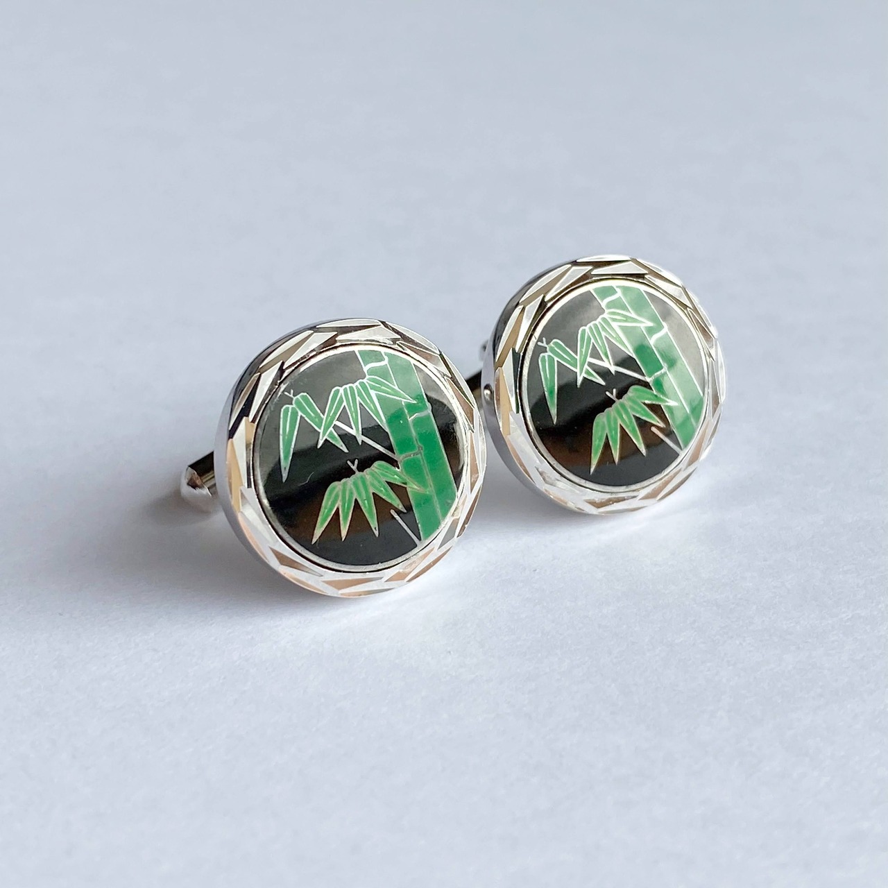 竹 七宝焼のカフスボタン(カフリンクス) 純銀メタル七宝