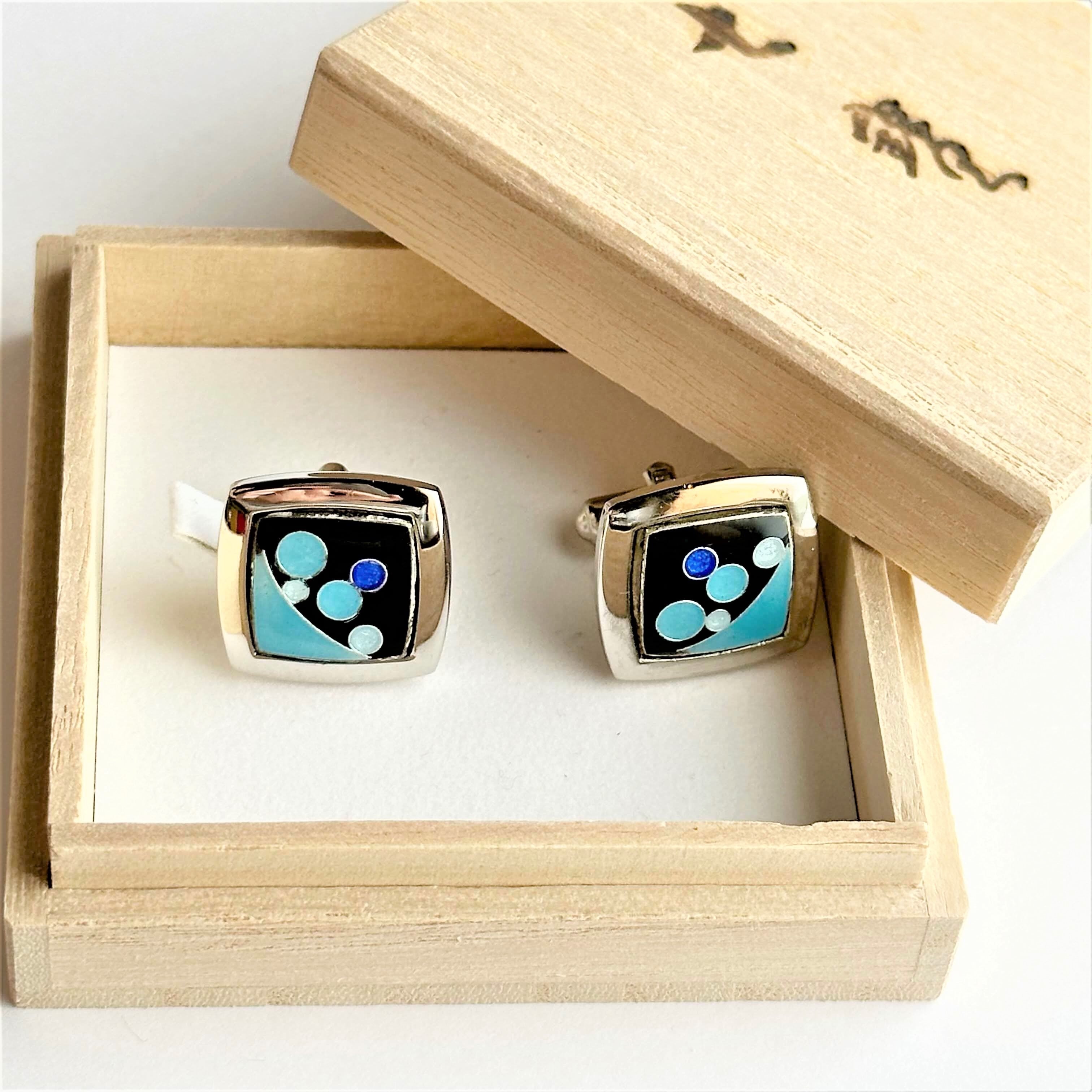 プラネット 七宝焼のカフスボタン(カフリンクス) 純銀メタル七宝